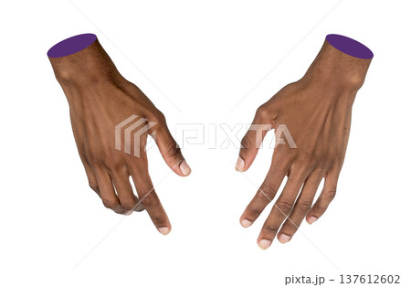 Hand reaching out with both arms open in outstretched pose. Black skin male making virtual
