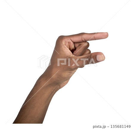 Left hand forms a small holding space between thumb and index finger in closeup. African American