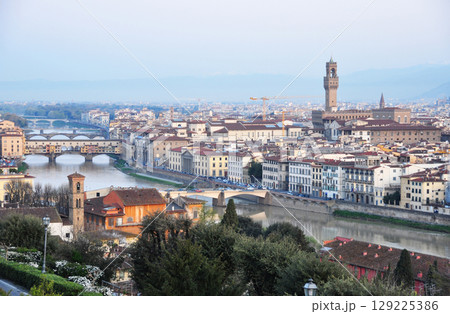 イタリア フィレンチェ ミケランジェロ広場から望むアルノ川の右岸の風景
