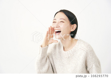 呼びかける中年女性 白背景