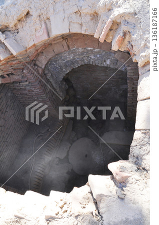 イラン シルクロード ヤズド近郊の遺跡 ハナラク城砦跡の貯水槽