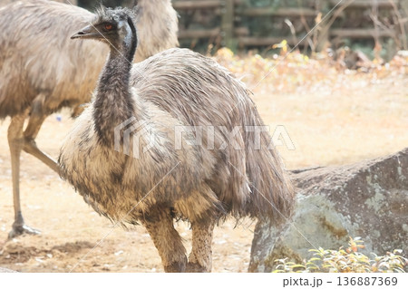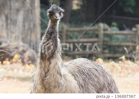 A large ostrich standing near a fence inside a zoo, Bannerghatta National Park, Bengaluru, India.