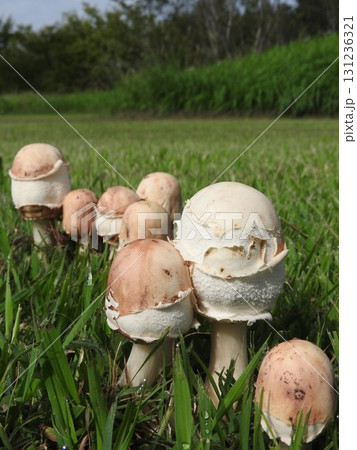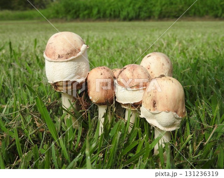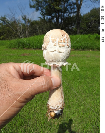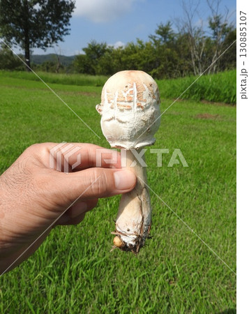 自然 茸 マントカラカサタケ、高さは数十センチ。白い傘は軽くふかふかでマシュマロを柔らかくした感じ