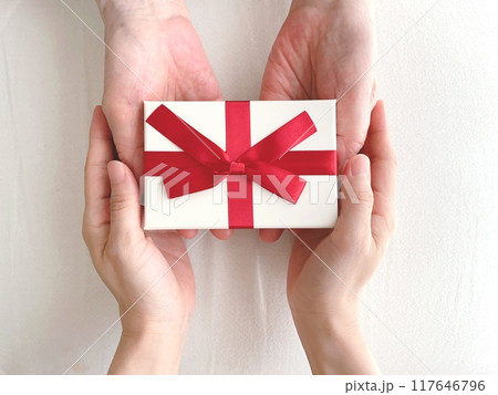 プレゼントを渡す女性の手元