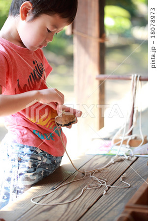 コマで遊ぶ子供