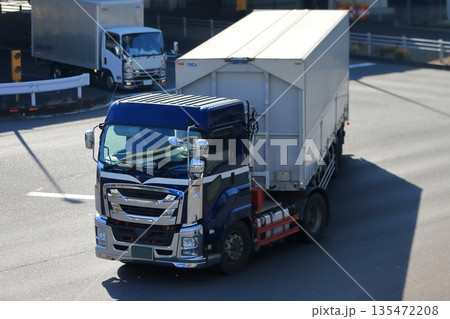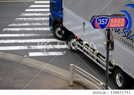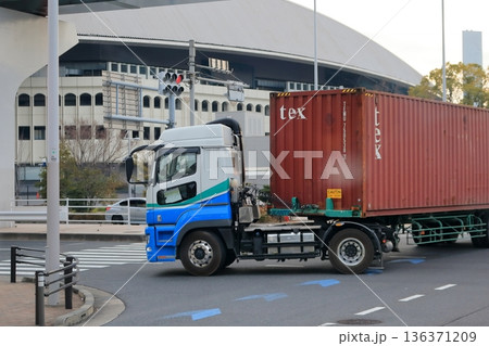 交差点を右折中のトレーラー イメージ