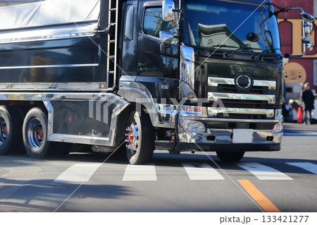 交差点を右折中のトラック イメージ