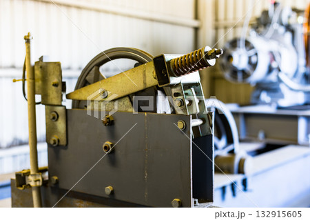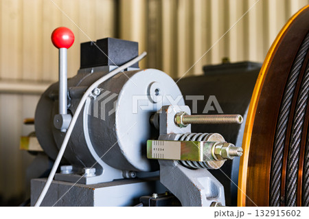 世界文化遺産の万田坑 熊本県荒尾市の旧三池炭鉱 機械室とエレベーター巻き上げ機のワイヤードラム部分