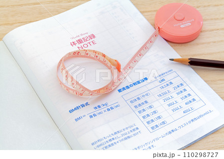 体重記録ノートとメジャー、ダイエットイメージ