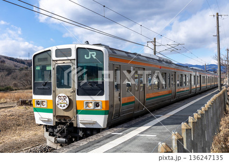 JR吾妻線の市城駅を発車する上り普通列車 211系