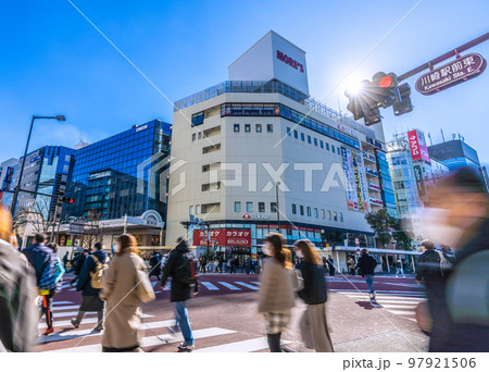 日本の川崎都市景観 お正月。川崎駅前東の交差点からモアーズなどを望む=1月3日
