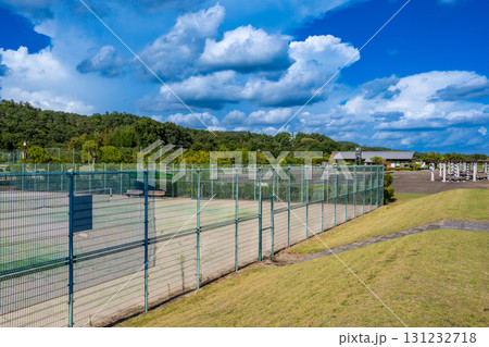 初秋の岡山市日応寺自然の森スポーツ広場のテニスコート 岡山県岡山市北区