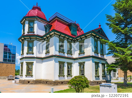 富山県富山市 快晴の富山市ガラス美術館・富山市立図書館本館