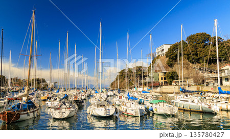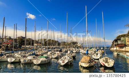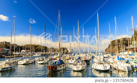 北海道江差町江差港マリーナのヨットのある風景を撮影