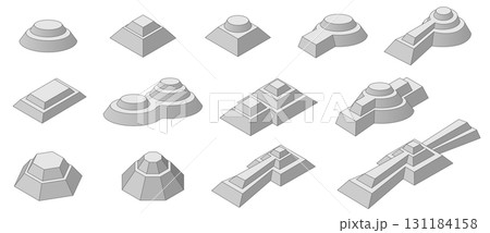 いろいろな古墳の種類のイラスト 前方後円墳や円墳などのシンプルなベクター素材 アウトライン有り