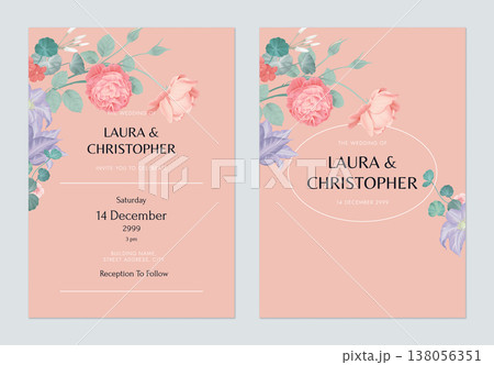 Floral wedding invitation card template design, various flowers and leaves
