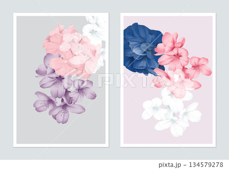 Botanical poster design, sakura, Pelargonium zonale and Semi-double Camellia