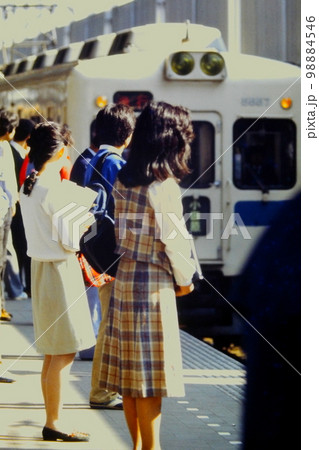 帰宅を急ぐ人達・秋の夕方の代々木上原駅、小田急5200形急行小田原行、1982年10月22日、EPD