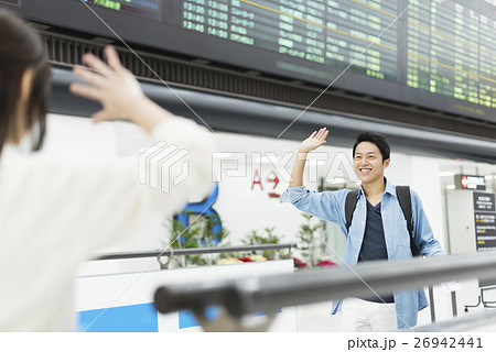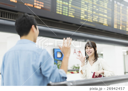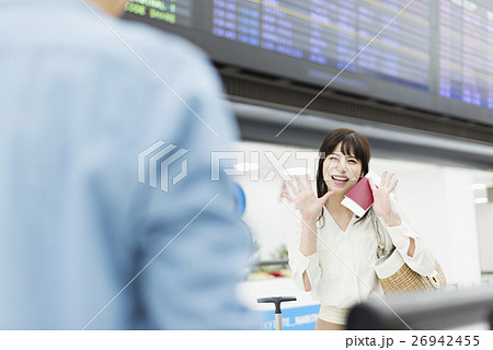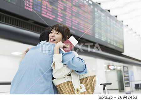 空港で待ち合わせをするカップル 夫婦