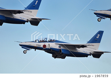 編隊離陸する航空自衛隊T-4ブルーインパルスのシルエット