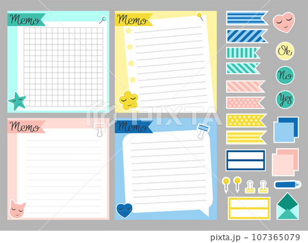 Set of template notes. Memos and stickers. Cute paper memo template. Notes, memo and to do lists used in a diary, home or office.