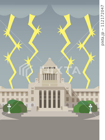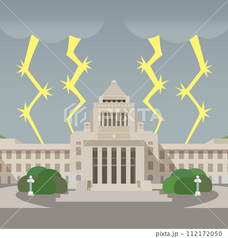 国会議事堂と雷のベクターイラスト