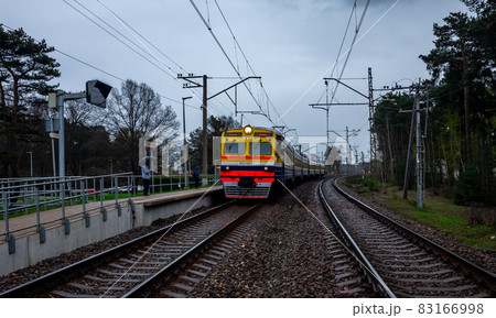 Suburban train at the railway station in Jurmala.