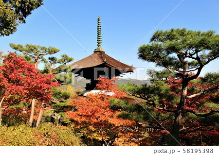 常寂光寺の紅葉と多宝塔の画像素材(写真・イラスト) 1ページ目