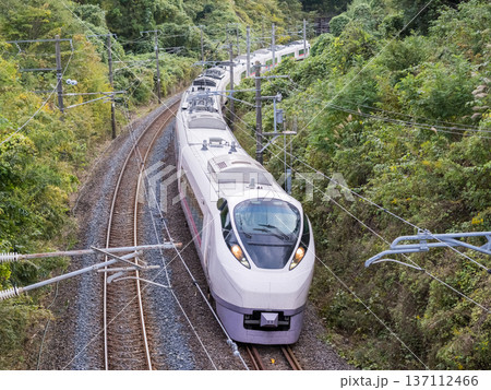 【常磐線】色付き始めた沿線を走行する特急列車