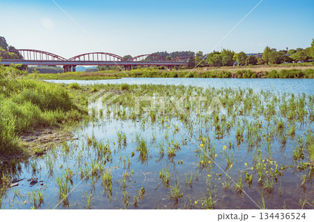 茨城 春の那珂川大橋(城里町)
