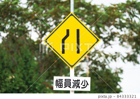 ポール付きのミニ標識の単品イラスト 幅員減少