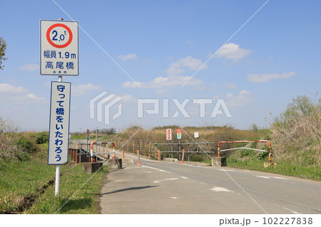重量制限のある北本市の荒川に架かる高尾橋の風景