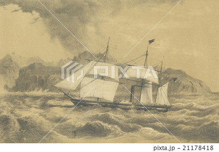 アンティーク・イラスト 「幕末の神戸港」(19世紀頃)