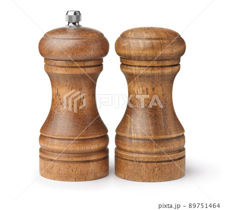 Pepper grinder mill, mortar, pestle and spice setisolated on white.
