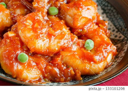 エビがいっぱい入った海老のチリソース【白背景・切り抜き】