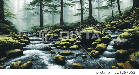 Moss-covered cobblestone in the green forest. Sochi, Lazarevskoe, Berendeevo kingdom