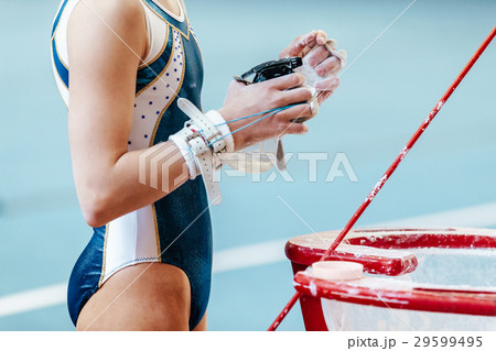 female gymnast exercise on uneven bars