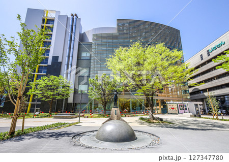四日市市民公園から見る市立博物館・四日市公害と環境未来館