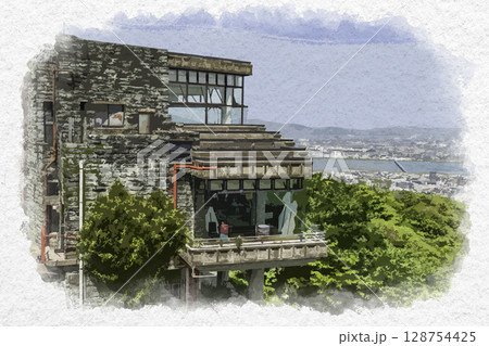 水彩画風 徳島眉山ロープウェイ山頂口展望台 徳島県徳島市