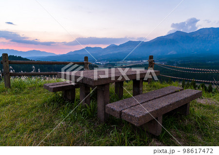 らくだ山展望台 「夕焼けの展望台風景」 (阿蘇郡高森町)