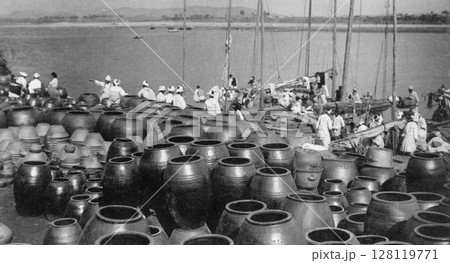 古写真 1931年 日本統治時代の北朝鮮・平壌市内 大同江沿いの朝鮮壷