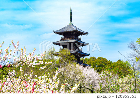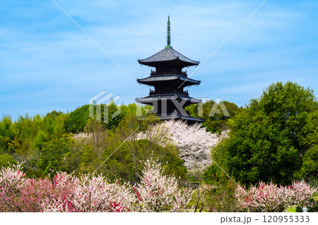 備中国分寺の春 梅と桜と五重塔3 岡山県総社市
