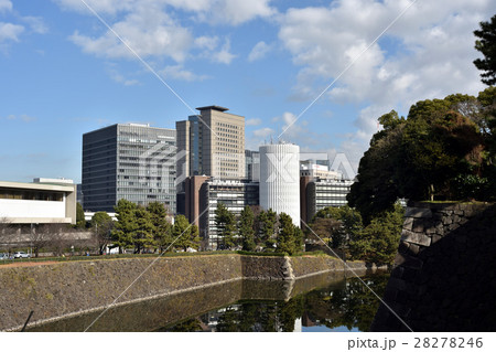 江戸城平川橋・お堀と大手町のビル群の都市景観