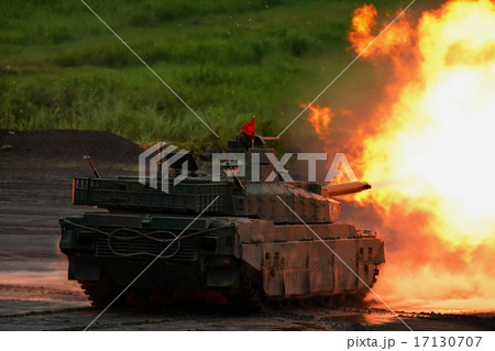 10式戦車 10TK ( 4代目主力戦車 ) 発砲炎 2015年 富士総合火力演習