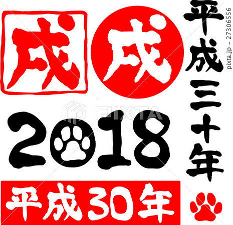 平成30年 戌年 2018 犬の肉球 文字素材 印章風