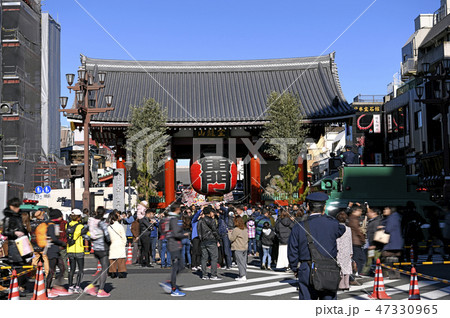 日本の東京都市景観 浅草寺などを望む(歩行者天国)。平成最後のお正月=平成31年1月2日撮影