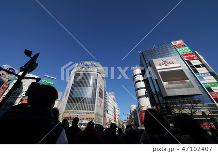 日本の東京都市景観 渋谷スクランブル交差点の「渋谷駅前」などを望む=平成31年1月2日撮影