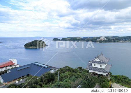 長崎県平戸市岩の上町、別名亀岡城と呼ばれ、平戸瀬戸に突出した平山城の平戸城