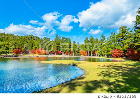 世界遺産 毛越寺の浄土庭園 紅葉の秋(岩手県平泉町)