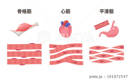 筋肉の種類のイラスト_骨格筋_心筋_平滑筋